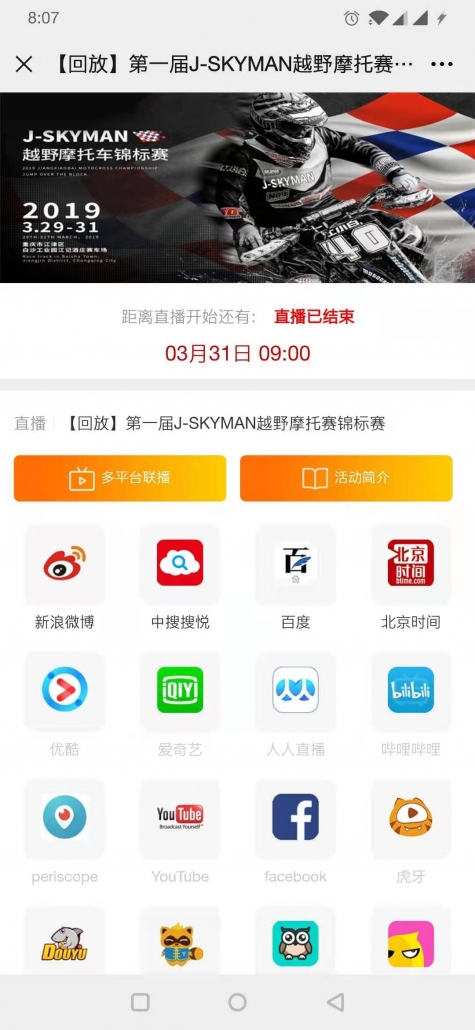 項目名稱:2019江小白摩托車越野錦標賽