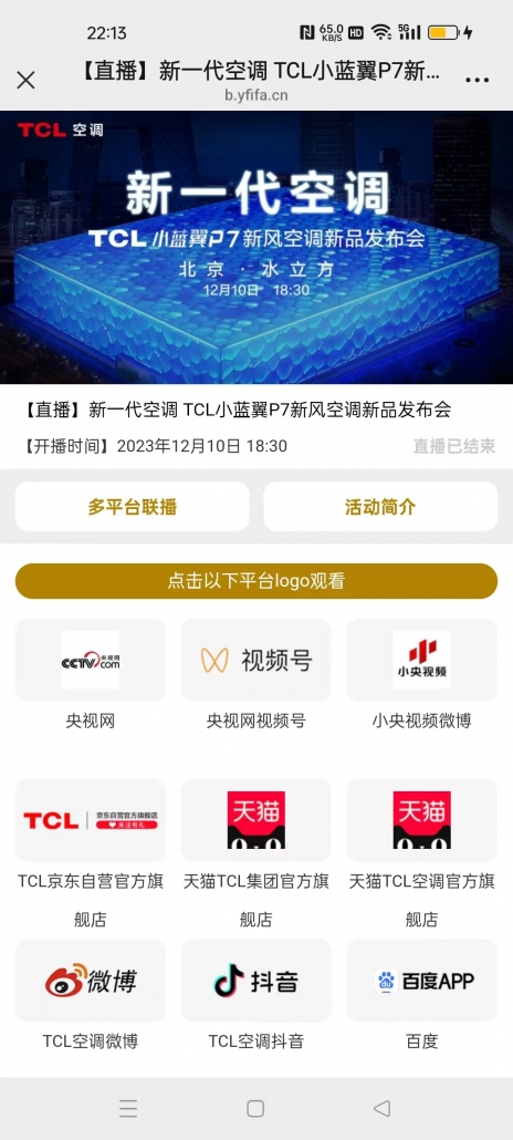 - 社交媒體:TCL空調官方視頻號、微博(@TCL空調)及抖音賬號發布直播回放。